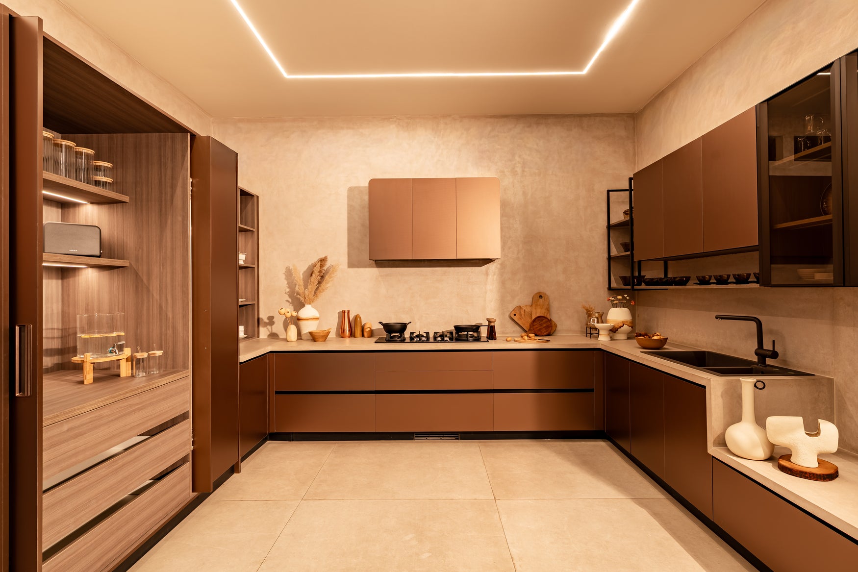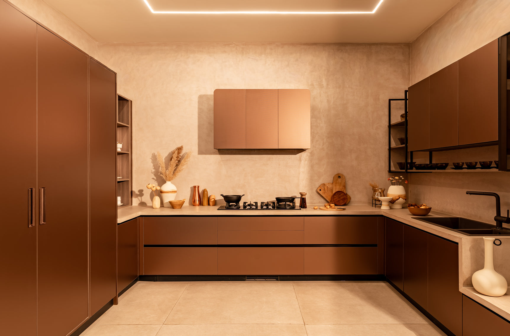 Fusion Kitchens explore the balance between materials. Contrasting finishes, textures, and tones are brought together to create depth without visual noise.